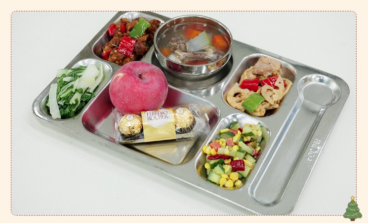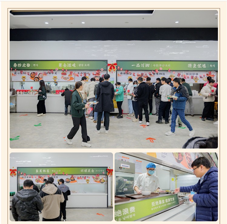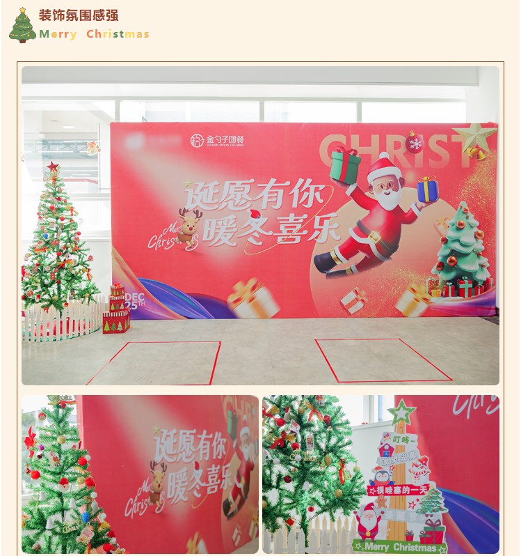 为增强活动的氛围感和体验感,食堂内部进行了精心布置??砂目ㄍê1ā⒀甭沟某【?、丰富的礼品、动听的音乐、各种节日特色供餐共同治愈焦虑填满幸福感,让员工感受到金勺子团队的服务热情。