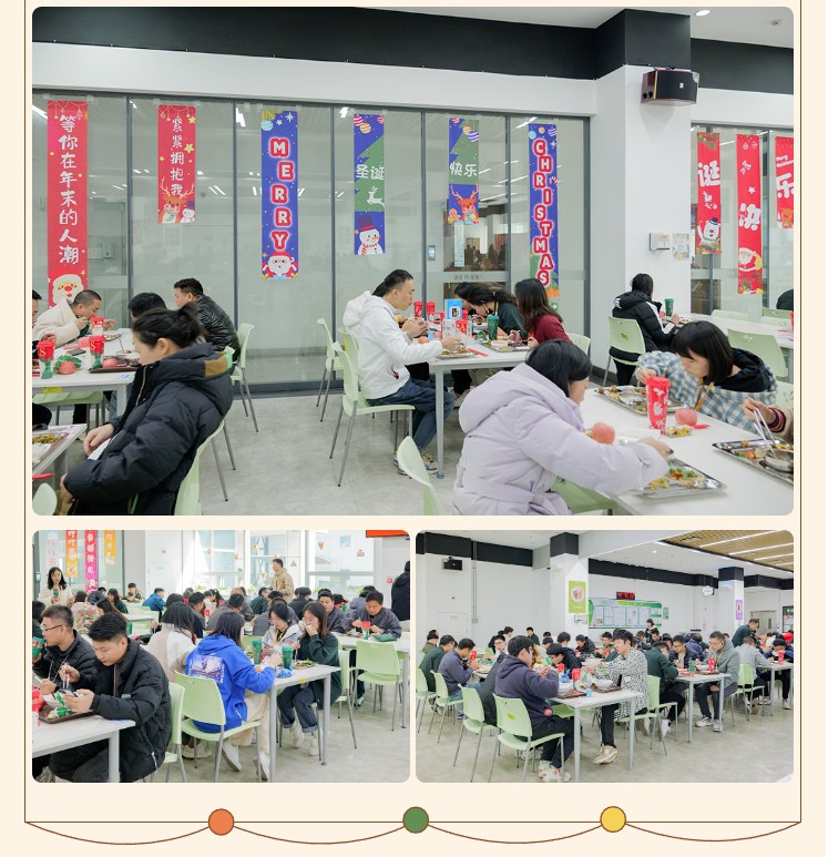 12月25日,金勺子团餐658门店举办一场欢乐温暖的《诞愿有您·暖冬喜乐》主题活动,吸引了众多职工前来参与,现场人头攒动。