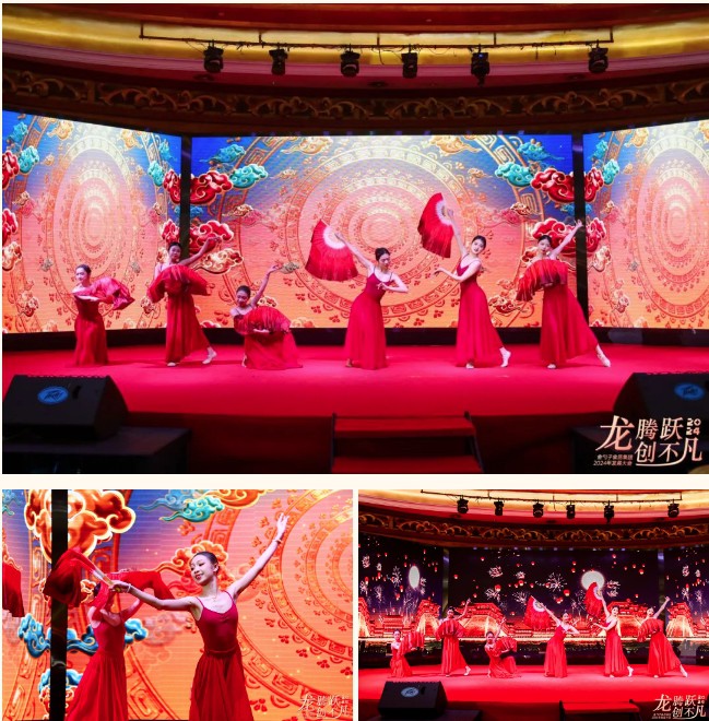 晚宴上,还设置了丰富多彩的歌舞表演、互动游戏,现场气氛热烈,一次次推向高潮,大家举杯相聚,最后晚宴以快乐的抽奖互动画上了完美的句号。